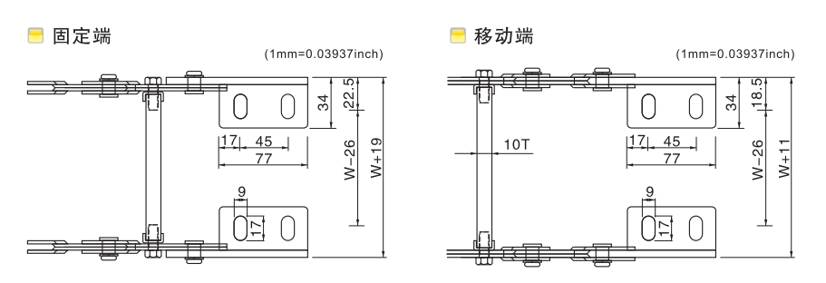 產(chǎn)品型號 Type | 寬度(mm) Width | 彎曲半徑(mm) Radius | 節(jié)距(mm) Pitch |