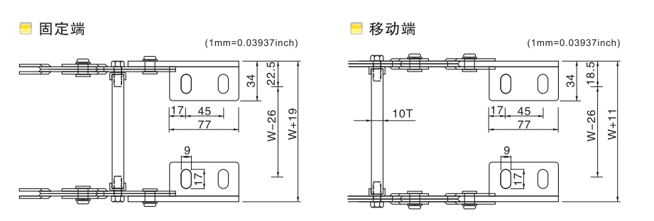 產(chǎn)品型號 Type | 寬度(mm) Width | 彎曲半徑(mm) Radius | 節(jié)距(mm) Pitch |