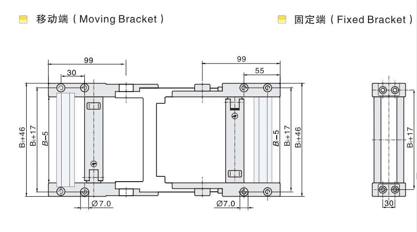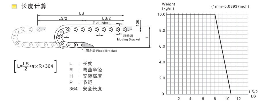 2. 相同系列的拖鏈內(nèi)高,外高,節(jié)距相同,拖鏈寬度,彎曲半徑可有不同的選擇。