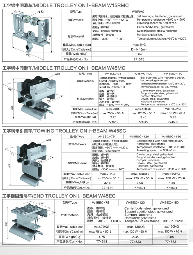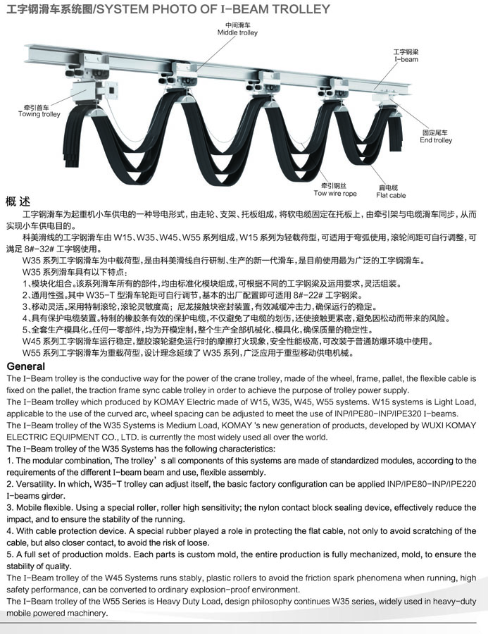 工字鋼滑車為起重機(jī)小車供電的一種導(dǎo)電形式,由走輪、支架、托板組成。