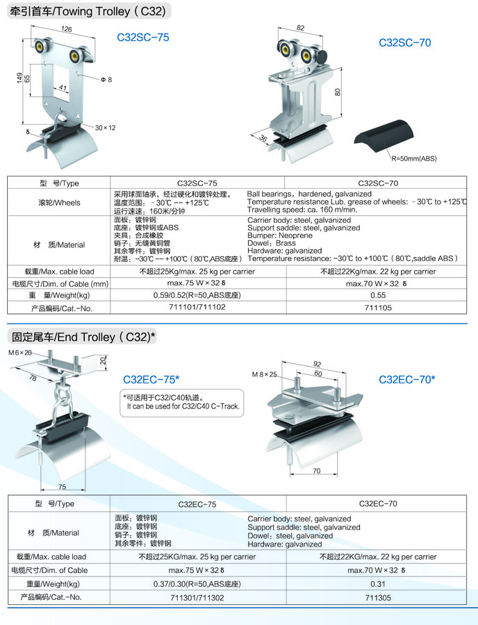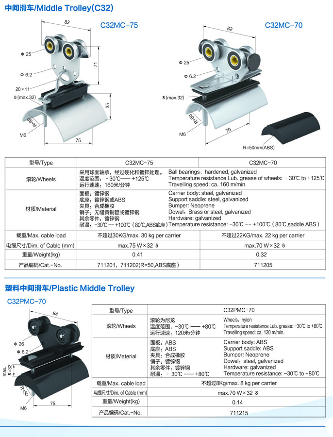 商品簡(jiǎn)介:電纜滑車是一種理想的物流供電系統(tǒng),適用于室內(nèi)外、多灰、多塵、溫差較大、環(huán)境要求較低、運(yùn)行平穩(wěn)。安能滑車的電纜滑車軸承為球面接觸,使小車的移動(dòng)靈活、穩(wěn)固、均勻、故障率極低。扁電纜及圓電纜均能安裝使用,并在滑車上裝有緩沖裝置及電纜保護(hù)裝置。目前,電纜滑車廣泛應(yīng)用于各種通用橋、門式起重機(jī)、電動(dòng)葫蘆自行小車、倉(cāng)庫(kù)、創(chuàng)長(zhǎng)、碼頭等起重設(shè)備的移動(dòng)供電。