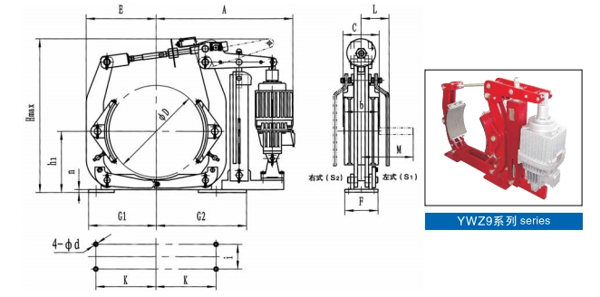 l Lining-wear limit-switch, equipped which signals will shown when wear of lining reaches the limit (note: self-compensation device should be equipped in application)