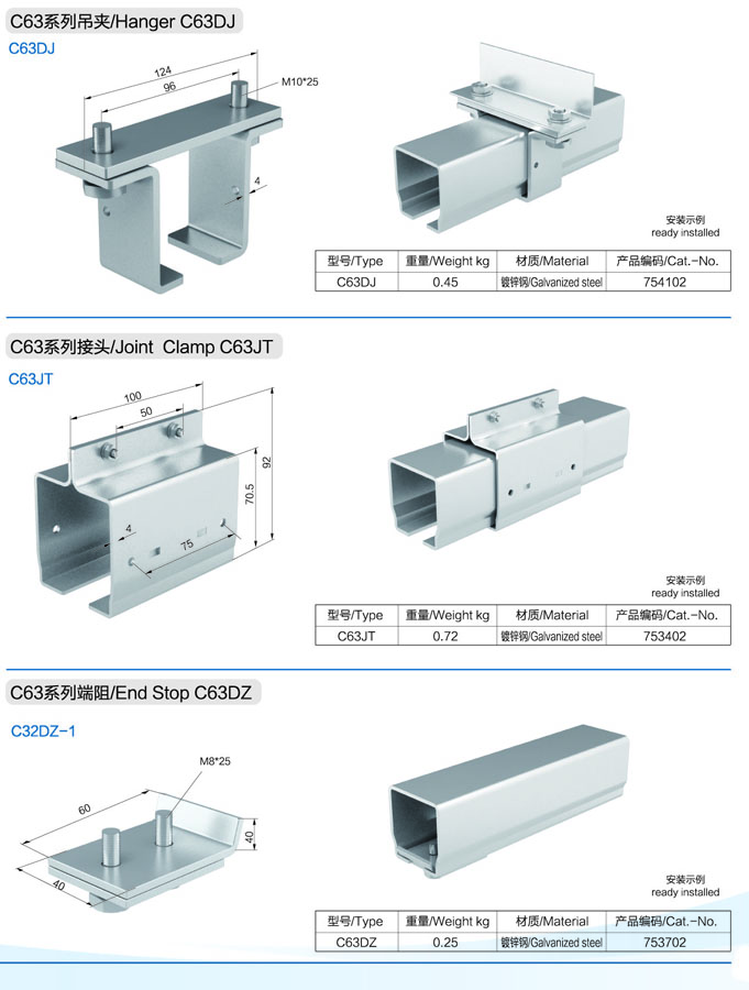 材質/Material | Galvanized steel/鍍鋅鋼(熱鍍鋅處理,C63系列外) | |||