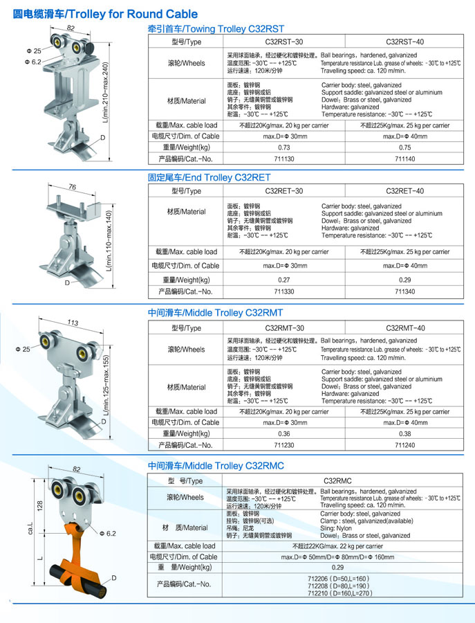 C32RST Towing trolley for round cable