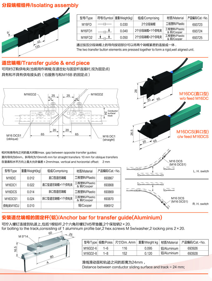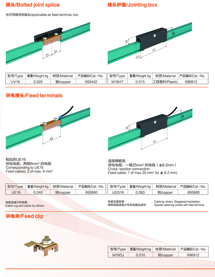 Description:Multipole conductor rais contail several poles in a flat common plastic housing. They are used for energy and data sypply on straight configurations, for indoor and weather protected outdoor applications.